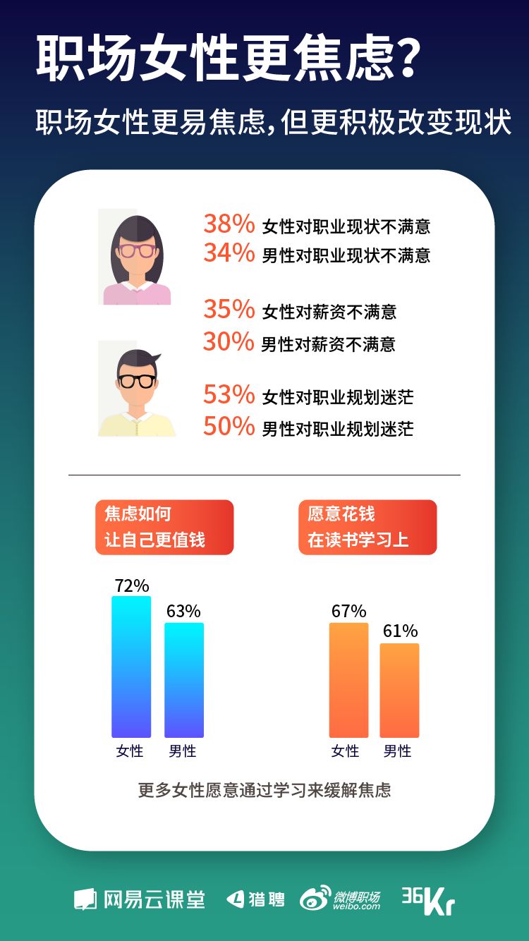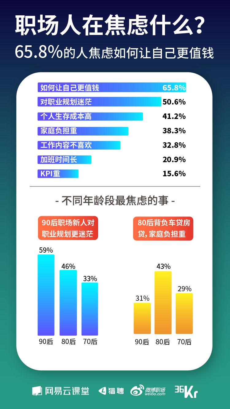 在此背景下,猎聘——在线学习平台网易云课堂联合在线学习平台网易云课堂,新商业媒体36氪以及微博职场联合发布了2019年《寒冬下职场人生存状态报告》(以下简称报告)。
